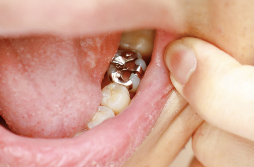 過去に虫歯治療を受けた歯の場合、詰め物や被せ物が劣化して変色し、黒く見えることがあります。