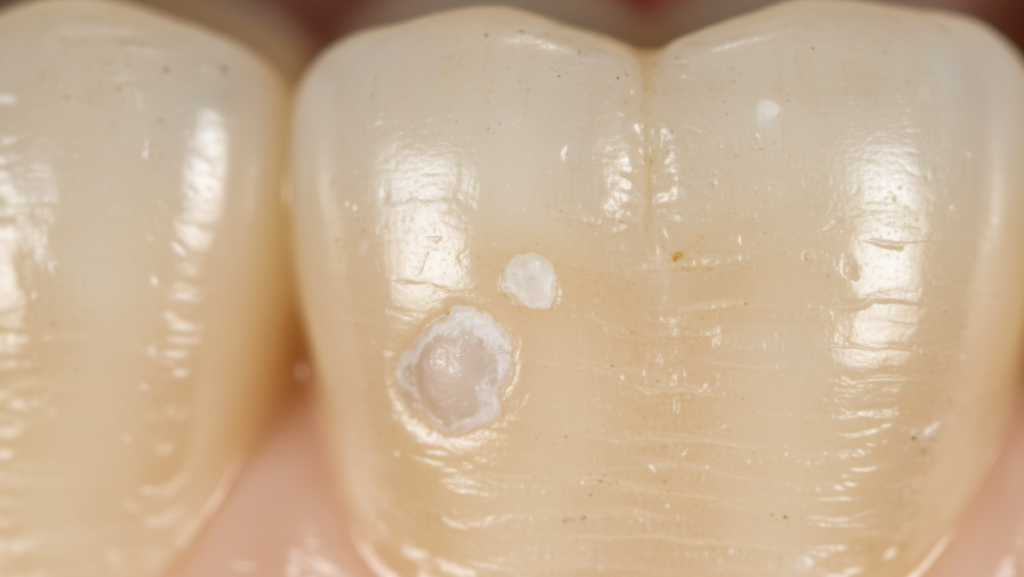 痛みがないため見逃しやすいですが、注意深く観察すれば発見できる可能性があります。ここでは、初期虫歯の代表的な見た目の変化を3つ紹介します。