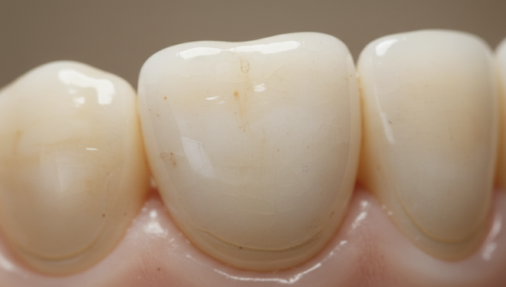 歯科医院で定期的にクリーニングを受けないと、セラミックの詰め物・被せ物の表面に微細な汚れが蓄積し、見た目の美しさを損なう可能性があります。