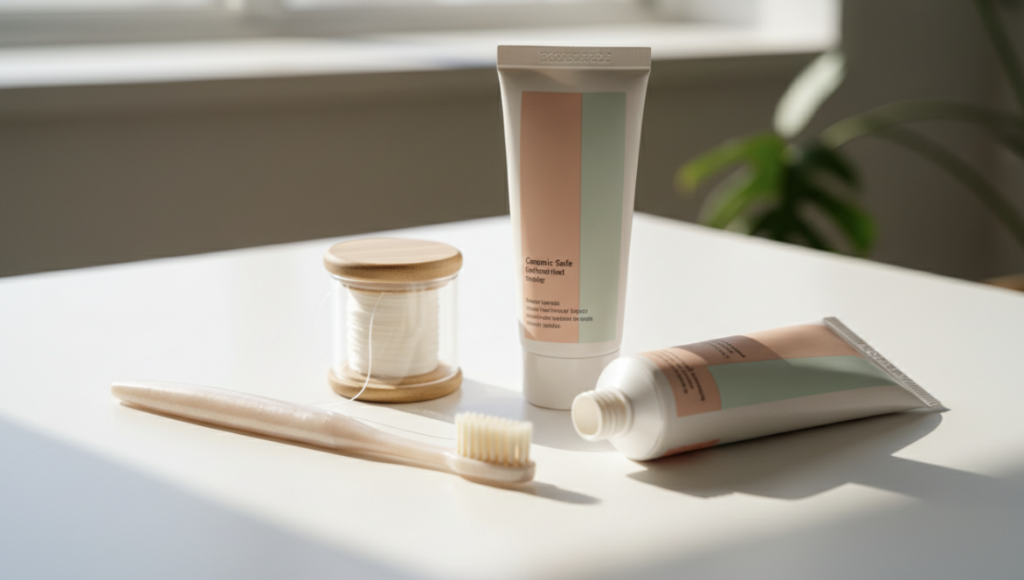 ただし、研磨剤入りの歯磨き粉はセラミックの表面に細かな傷をつける可能性があるため、使用を控えることをおすすめします。セラミック専用の歯磨き粉や、研磨剤の少ない歯磨き粉を選びましょう。