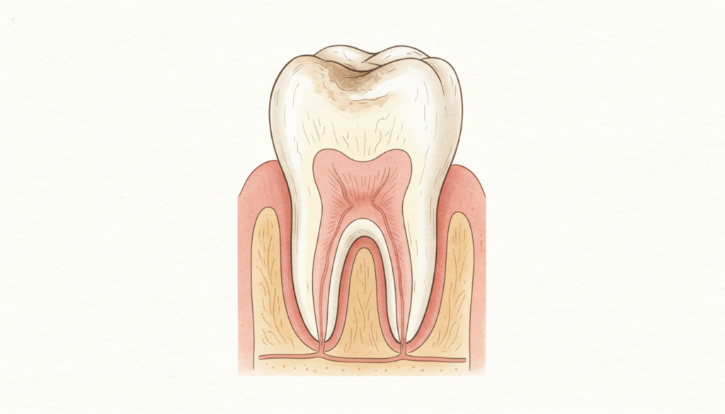 虫歯がエナメル質の内側にある象牙質まで達している状態です。
